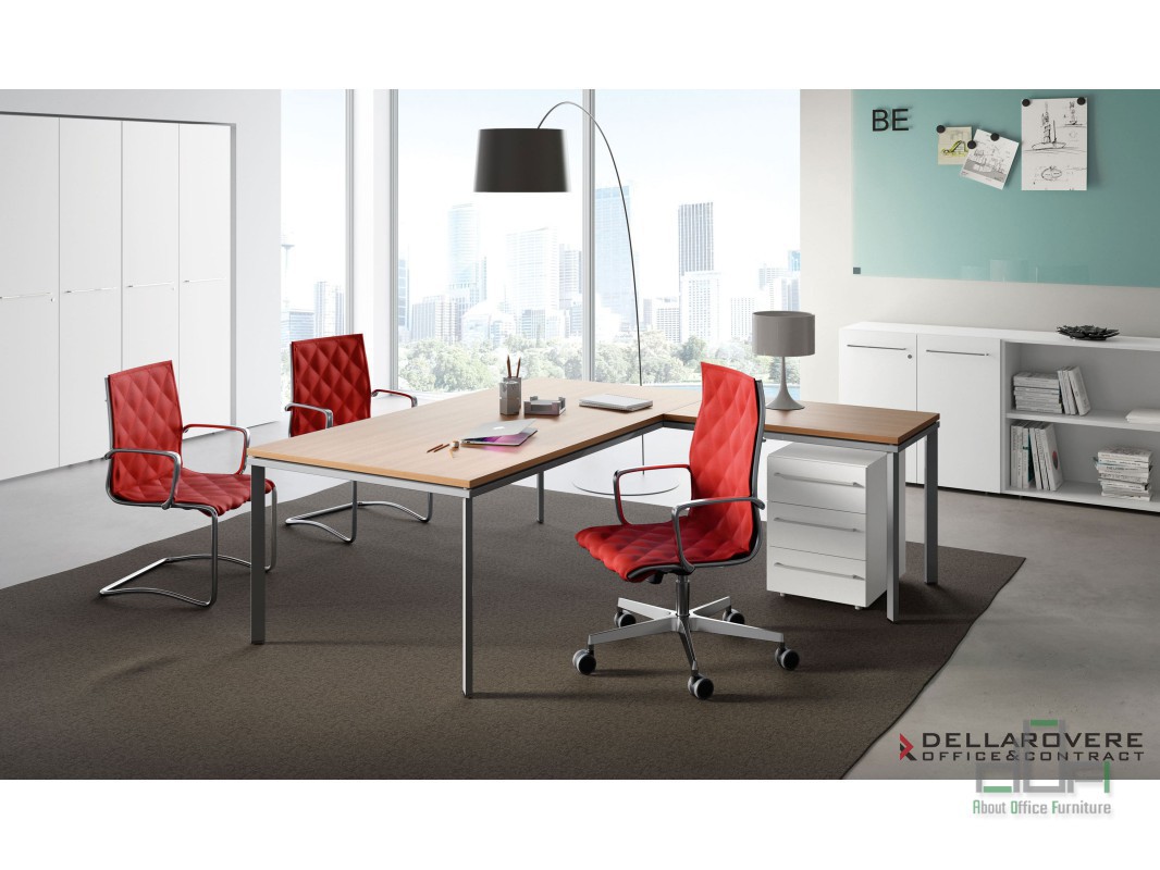 Birou operational BE EXECUTIVE: birou operational individual, blat realizat din Pal, grosime 25mm, sau din sticla securizata cu grosime 12mm, finisaje diverse culori, picioare metalice cromate, diferite dimensiuni disponibile, se poate configura in foarte multe variante, posibilitate extensie laterala sau frontala, terminatii reglare planeitate.