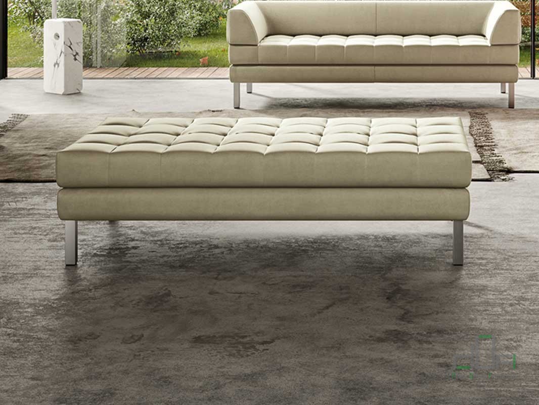 Structural, toate produsele au o carcasă din placaj (un plus calitativ deloc indiferent unde se găsește în mod obișnuit PAL), asamblată cu feronerie din oțel galvanizat și picioare cu secțiune pătrată din aluminiu anodizat cu nylon sub picioare. Căptușeala importantă este realizată din spumă poliuretanică de grosime și densitate corespunzătoare. Gama de tapițerie este foarte largă, înțelegându-se că produsul își găsește cel mai mare accent în aplicarea diferitelor categorii de piei oferite în colecțiile Emmegi. Manopera capitonné, lucrata manual, infrumuseteaza suprafata șezutului poufului, oferind un strop de atmosfera secolului XX, amintita si de bancile si compozitiile geometrice pe care combinarea acestora le permite.