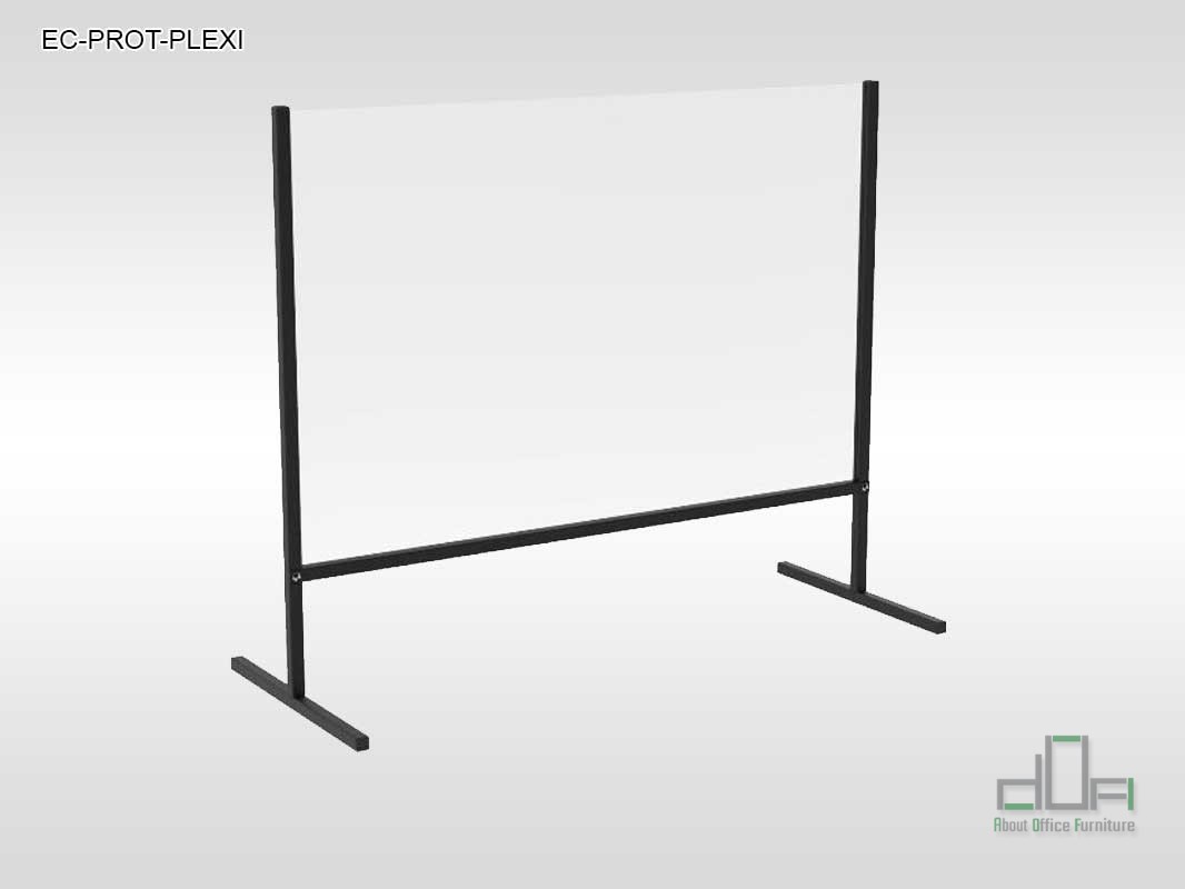 Placa din plexiglas – pentru construcția acestui separator s-a ales acest material deoarece este un material cu rezistență mecanică ridicată, rezistent la radiațiile UV și la condițiile externe. El reprezintă o barieră de siguranță împotriva transmiterii directe a virusurilor, bacteriilor și altor germeni. Plăcile sunt incolore, au transparență ca de sticlă, dar sunt de 2 ori mai ușoare și de 20 de ori mai durabile. Ele sunt o alternativă la sticlă în locurile în care siguranța este deosebit de importantă, iar utilizarea sticlei tradiționale este inadmisibilă sau periculoasă.