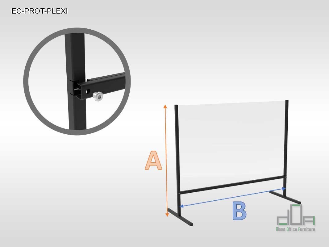 Constructiv, ecranul de protecție este compus dintr-o structură metalică, profil pătrat, vopsit electrostatic în negru. Asamblarea se realizează foarte simplu.