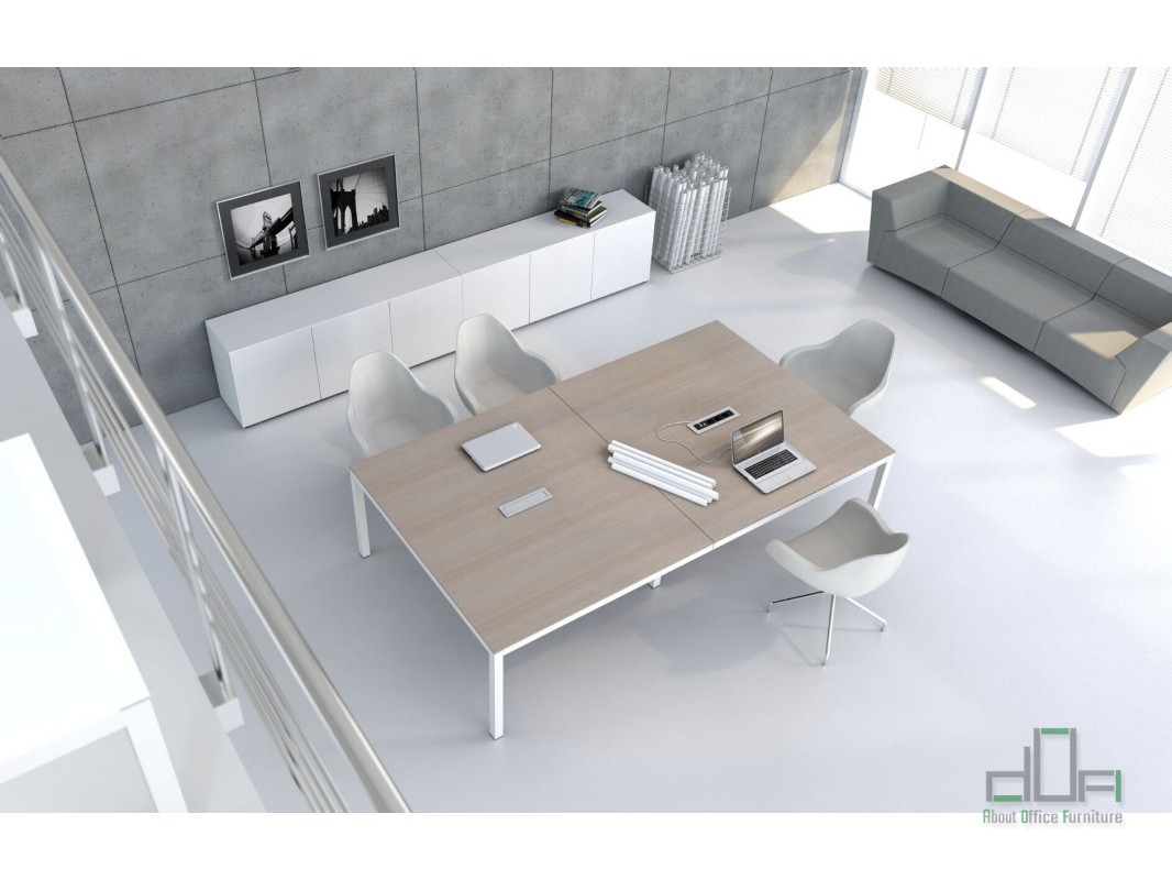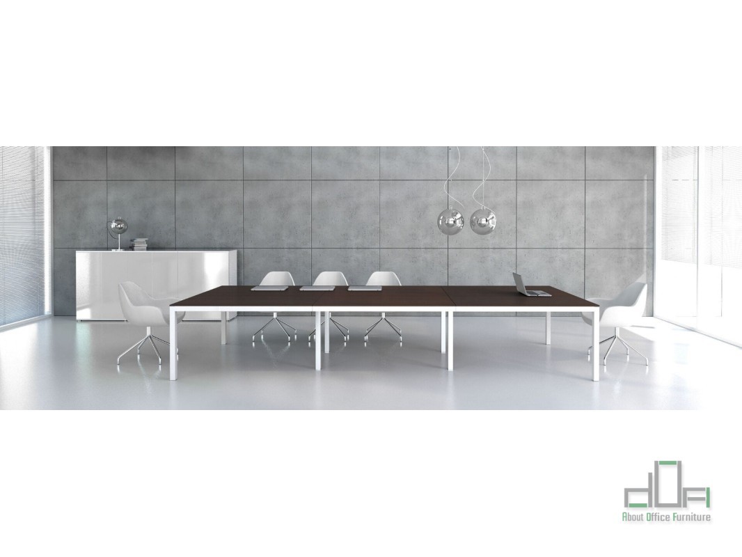Masa meeting IMPULS: Descriere: masa meeting-consiliu modulara, blat din Pal cu grosime 18mm, structura metalica rectangulara, picioare metalice, posibilitate mediabox-cable management, terminatii reglare planeitate, se adapteaza oricarui spatiu de la 6-8-10 persoane pana la 26-28-30 persoane, diferite lungimi si latimi disponibile.