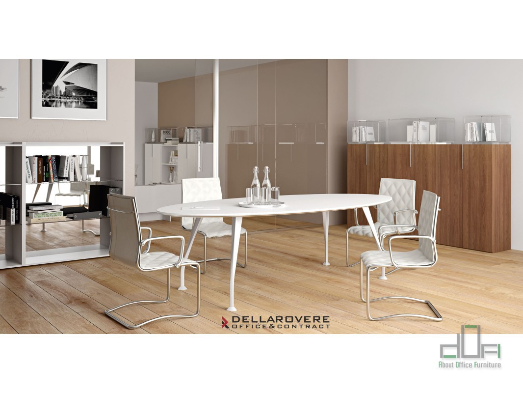 Masa meeting SEGNO: masa meeting/consiliu, blat din sticla securizata, cantuita cu grosime 12mm, picioare metalice design, se adapteaza oricarui spatiu si poate fi utilizata de 4-6-8 persoane, terminatii ...