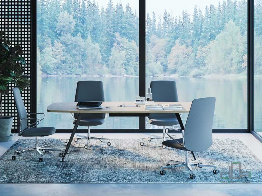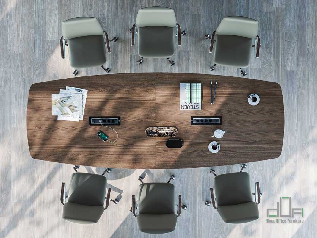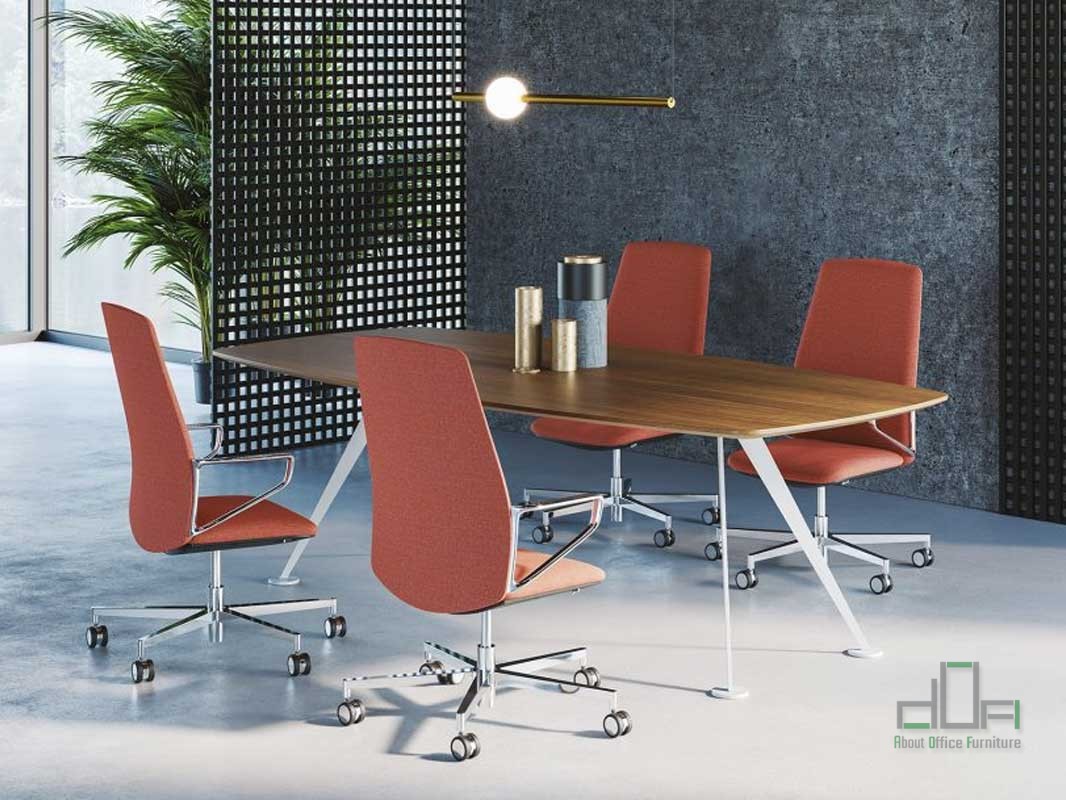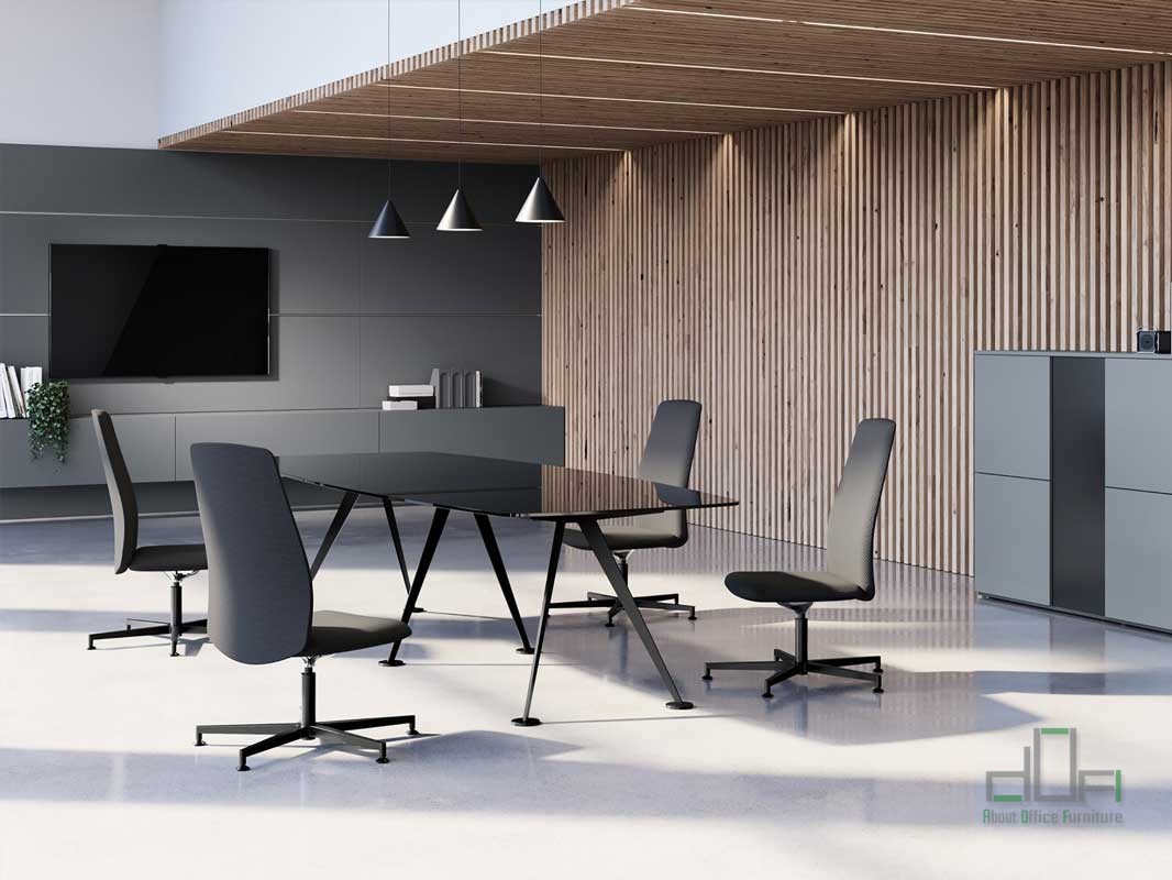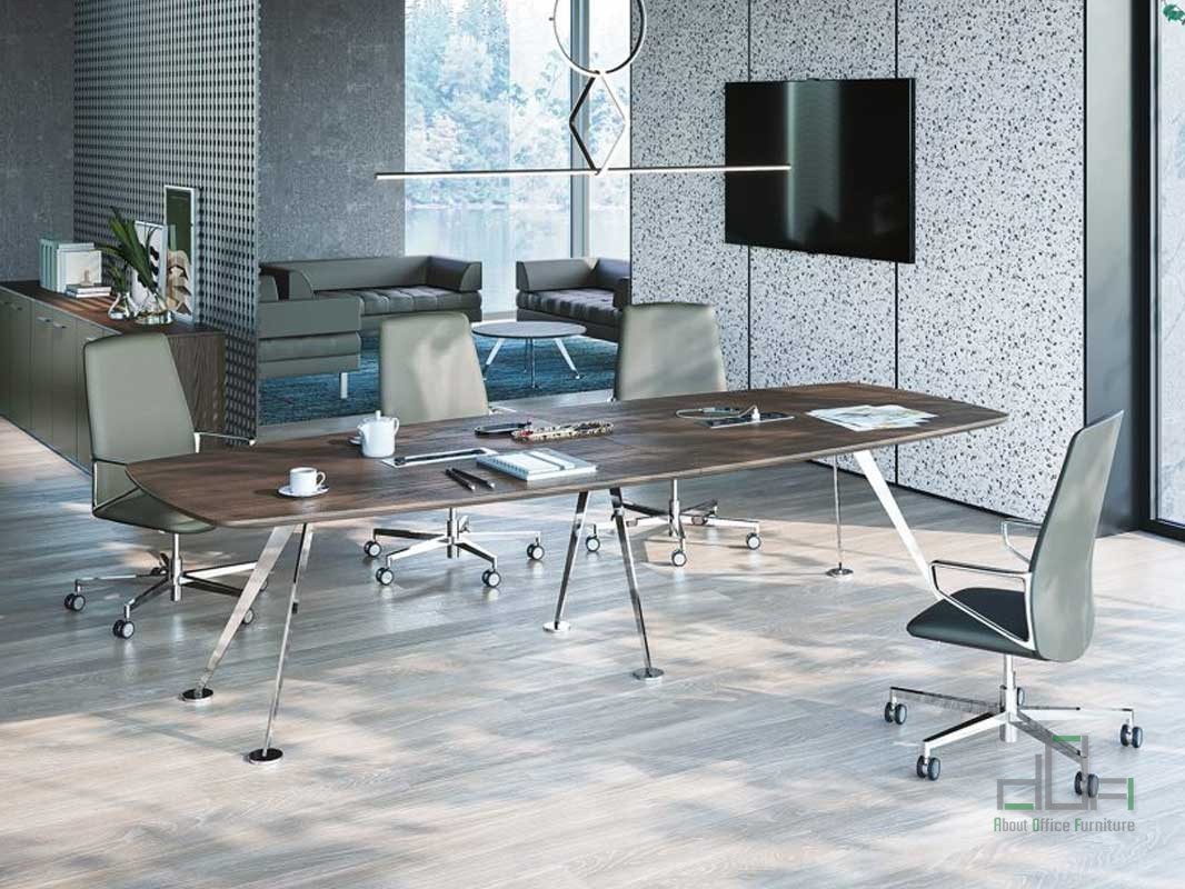 Masa meeting SPIKE: masa meeting dreptunghiulara, dimensiuni disponibile: Lungime 240-280-320cm, Latime 120cm, poate fi configurata pentru 6-8-10-12 persoane, blat din furnir sau Melamina, finisaje diverse culori, cu picioare metalice retrase de capatul mesei, finisaj diverse culori, terminatii protectie pardoseala si antiumiditate.