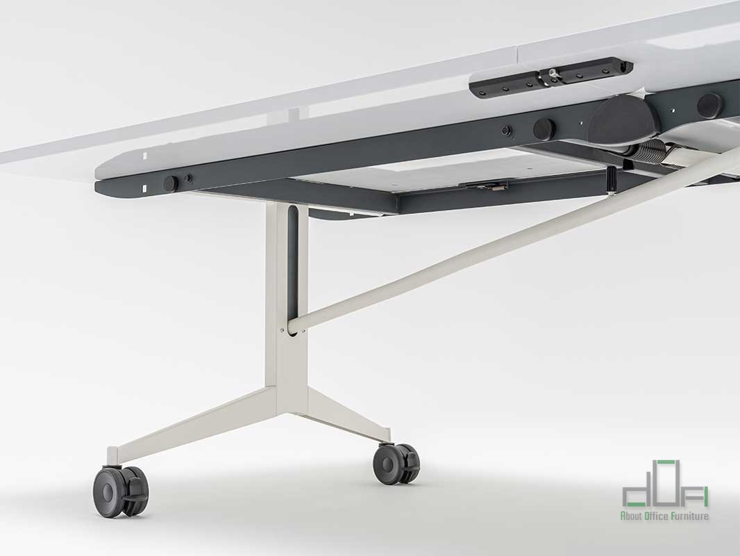 Masa meeting Plex: masa meeting, masa connferinta, masa intalniri, masa training, masa cafeteria, masa multifunctionala, masa mobila, masa pliabila, poate avea diferite dimensiuni pentru Lungime si Latime, masa poate fi configurata pentru 6-8-10-12 persoane, blatul de lucru este din MFC cu grosime 28mm, cant ABS de 2mm, mai multe finisaje de culori disponibile, structura metalica care este mobila si pliabila poate fi alba, neagra, antracit sau gri aluminiu. Plex este o masă compactă potrivită pentru săli de conferințe, studii precum și birouri în spațiu deschis. Este un însoțitor excelent al diferitelor întâlniri, ateliere și formare. Mecanismul avansat de pliere permite manevrarea mesei, dar doar unei singure persoane. Odată pliată, lățimea mesei scade la 50 de centimetri ceea ce ajută la deplasarea mesei prin ușă, transportați-o cu un lift sau depozitați-o în spații mai mici. Plex este echipat cu un mecanism de protecție care protejează utilizatorul de blocarea mâinilor în timpul plierii și desfacerii mesei. Oferta .mdd include trei forme diferite: dreptunghiular, dreptunghiular cu margini rotunjite și butoi. În plus, există trei finisaje disponibile: placă melaminată, laminat Fenix nano-tech, care se remarcă prin rezistența ridicată la zgârieturi și abraziune, precum și tabla albă cu ștergere uscată, care permite crearea de note direct pe masă. Designul universal și culorile monocromatice fac ca masa să se potrivească cu stilul principal al interiorului, compunând un aranjament coerent din punct de vedere estetic.