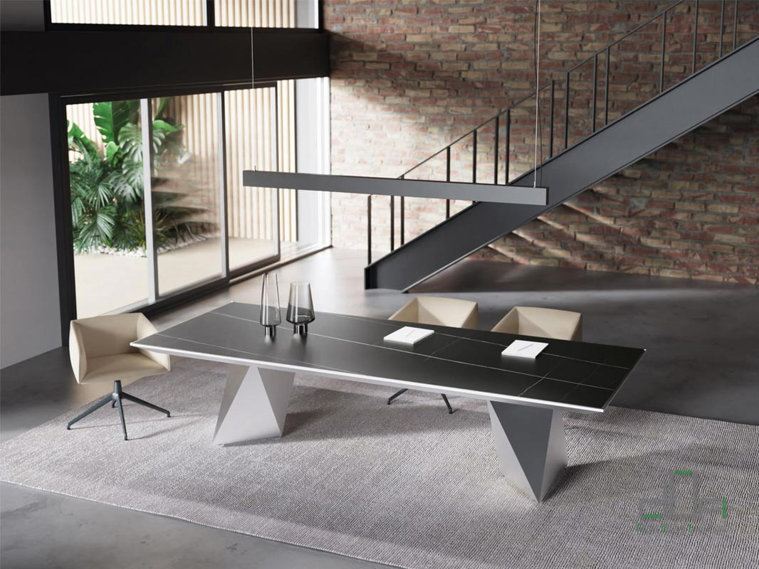Masa meeting ERACLE: unicitatea geometriilor fațetate, care caracterizează structura din aluminiu a lui Eracle, înfrumusețează mediul executiv dedicat întâlnirilor. Masa meeting ERACLE poate fi produsa cu lungimi incepand cu 150cm pana la 300cm si Latime de la 100cm, 120cm sau 150cm, poate fi o masa patrata sau masa dreptunghiulara, poate fi cu inaltime standard 76cm sau masuta cafea cu inaltime 48cm.