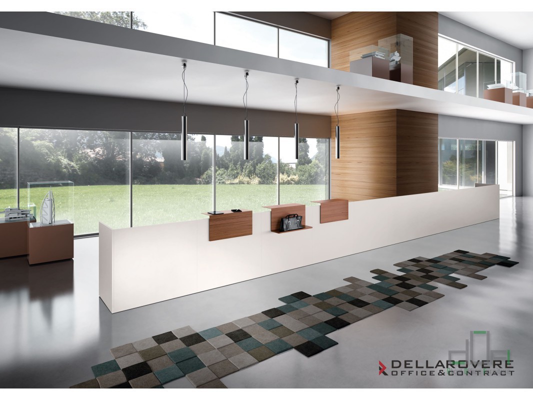 Receptie LITHOS: receptie modulara, se poate configura si adapta oricarui spatiu, diferse posibilitati de configurare, in forma literei L, U, dreptunghiulara, din Pal, posibilitate depozitare, diverse finisaje de culori, terminatii reglare planeitate si antiumiditate.