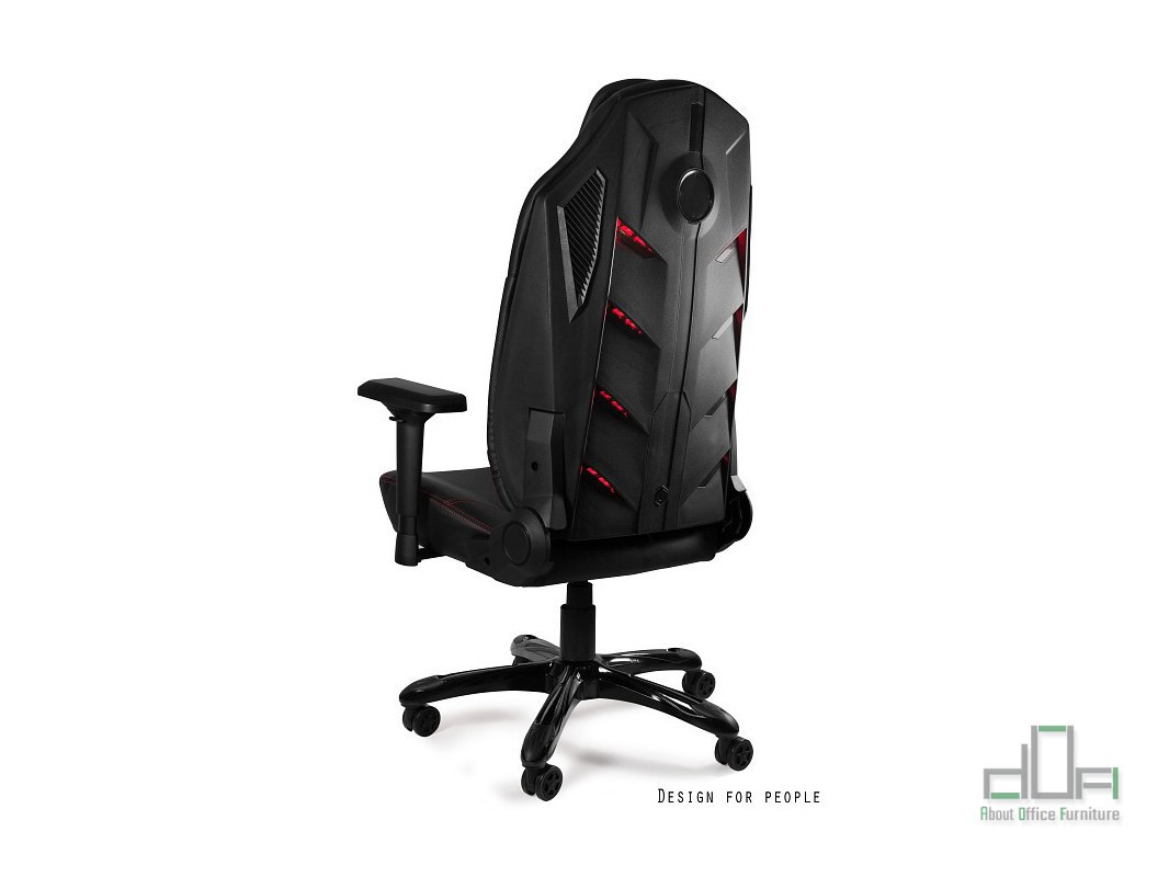 Scaun ergonomic gaming Dynamiq: scaun ergonomic operational, mechanism gas lift pentru reglare pe inaltime, mecanism tilt plus pentru spatar, mecanism pentru reglare sezut in profunzime, tetiera, brate reglabile pe inaltime, profunzime, stanga/dreapta, fata/spate, sezut si spatar din spuma poliuretan consolidata la rece care isi pastreaza densitatea, tapiterie diverse finisaje si diverse culori, baza mobila din polopropilena neagra lacuita, echipat cu sistem Bluetooth, ecgipat cu iluminare Led, telecomanda.
