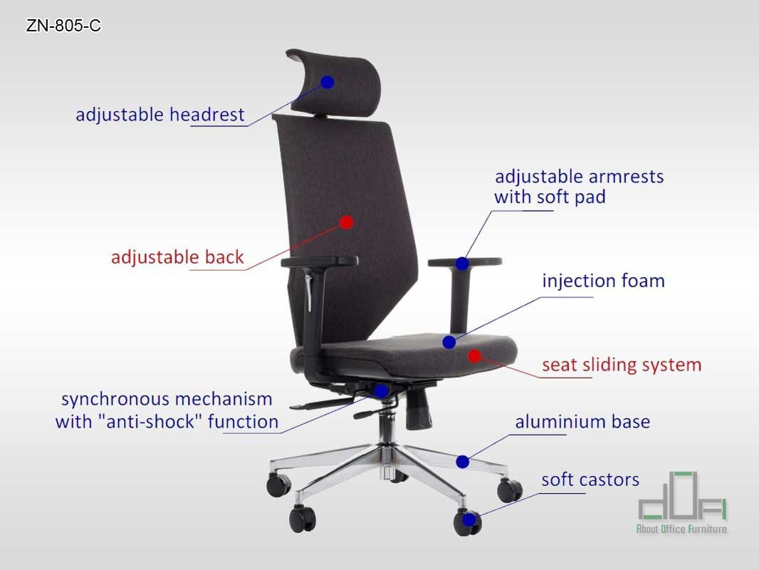 Caracteristici scaunului de birou rotativ, ergonomic, pivotant ZN-805-C Antracit