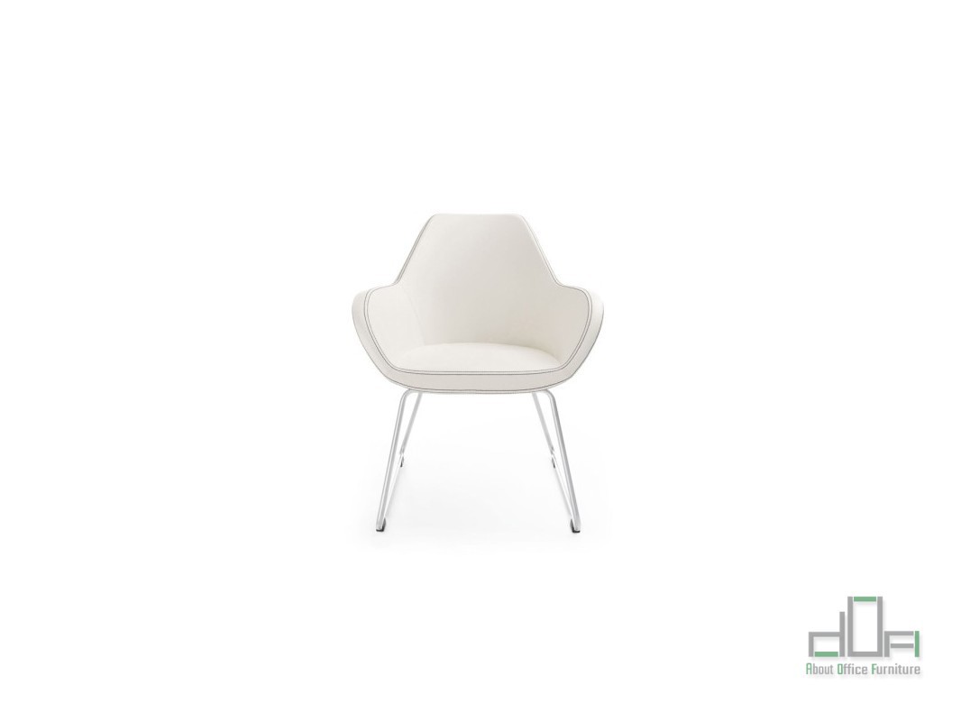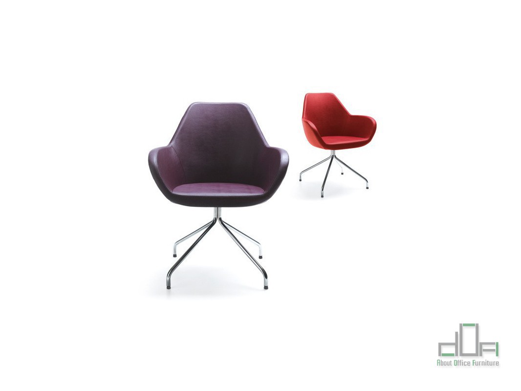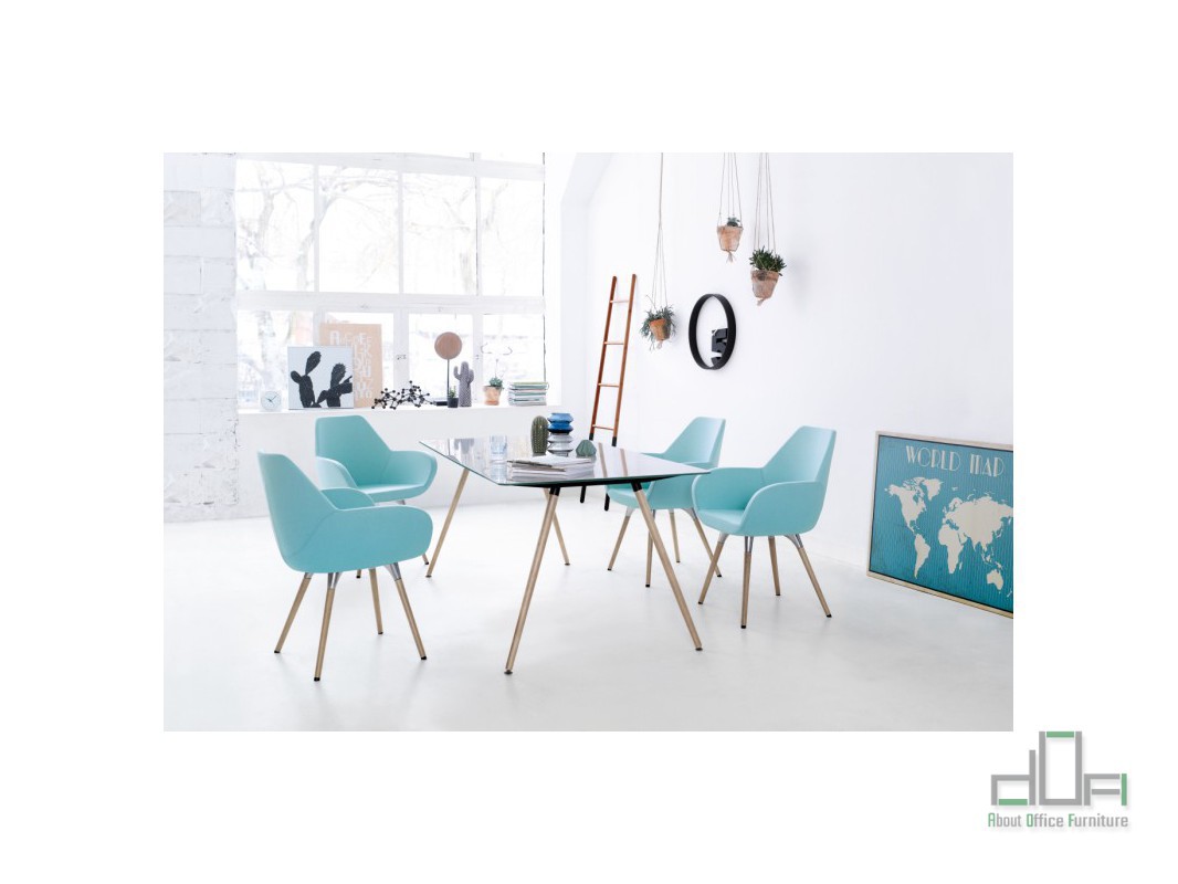 Scaun meeting FUN: scaun meeting/vizitator, sezut, spatar si brate din spuma poliuretan consolidata la rece care isi pastreaza densitatea, tapitate cu material textil, piele ecologica sau piele naturala, finisaj diverse culori, structura metalica fixa, cromata sau neagra sau structura picioare din lemn, terminatii protectie pardoseala.